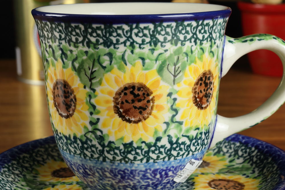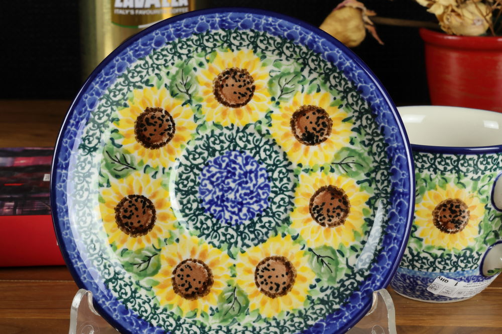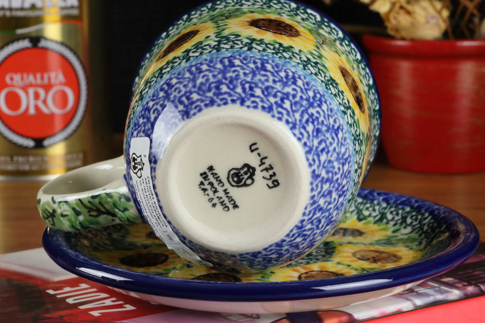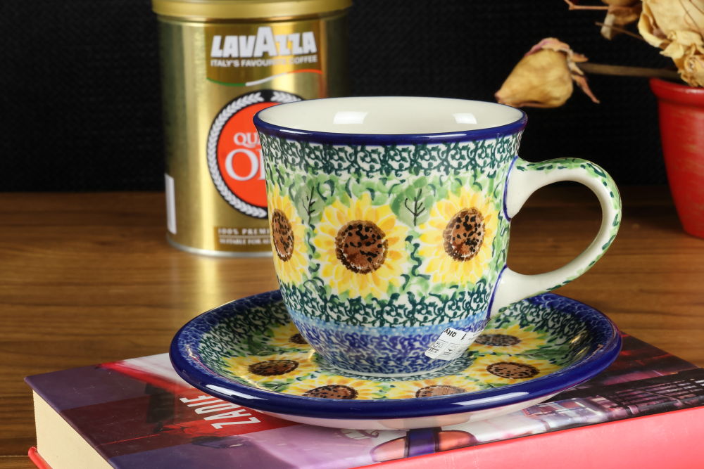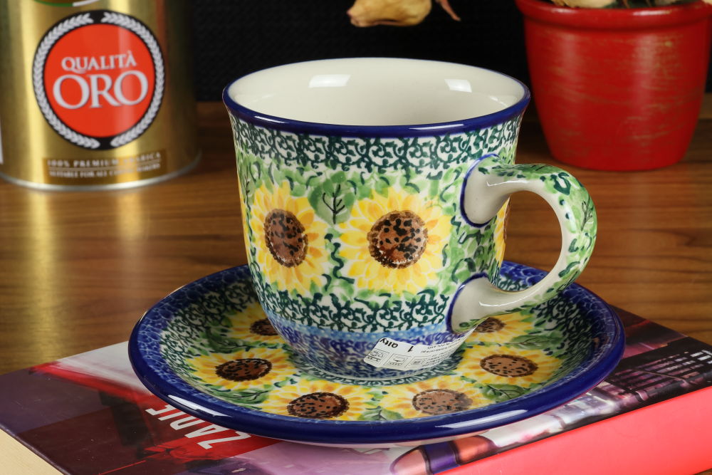 Filiżanka ze spodkiem B66 dekoracja Słoneczniki U4739 Ceramika Bolesławiec