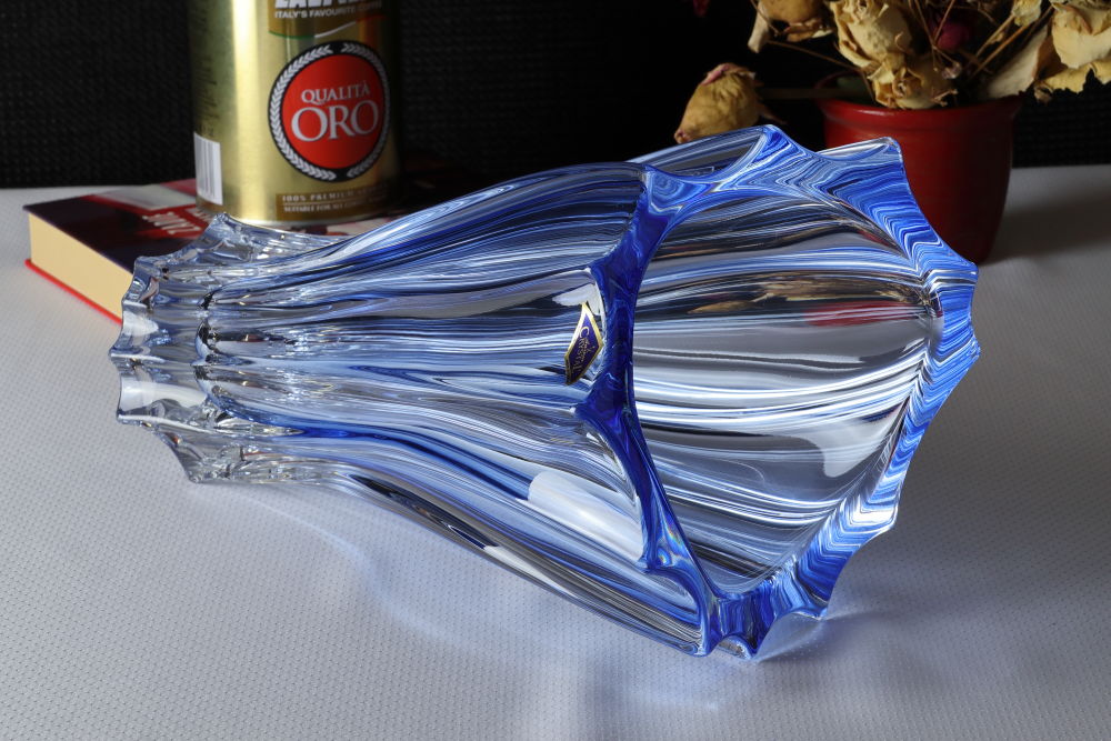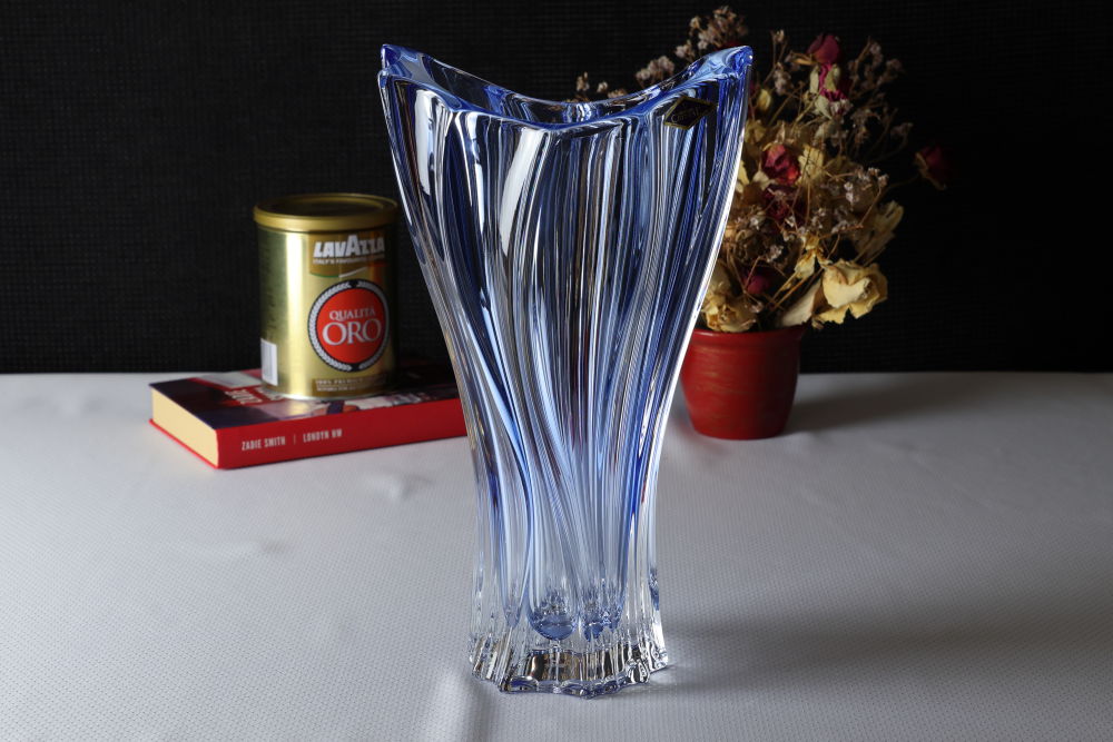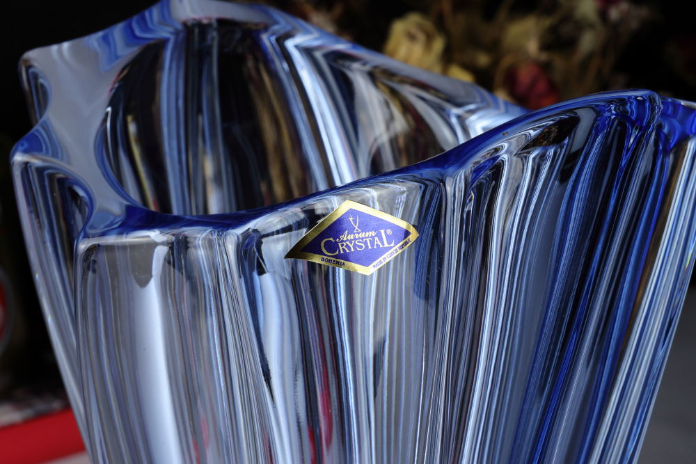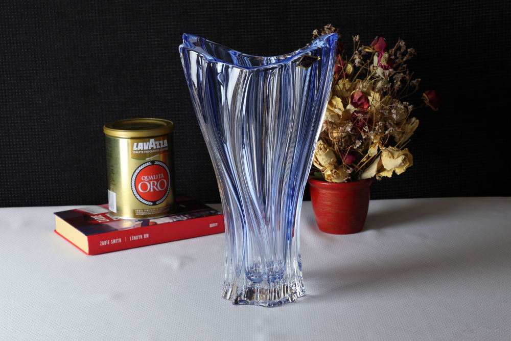 Kryształowy wazon w chłodnym i urzekającym niebieskim kolorze od znanego producenta szkła i kryształu – firmy Bohemia.
