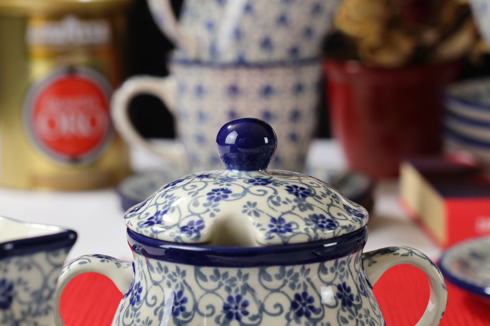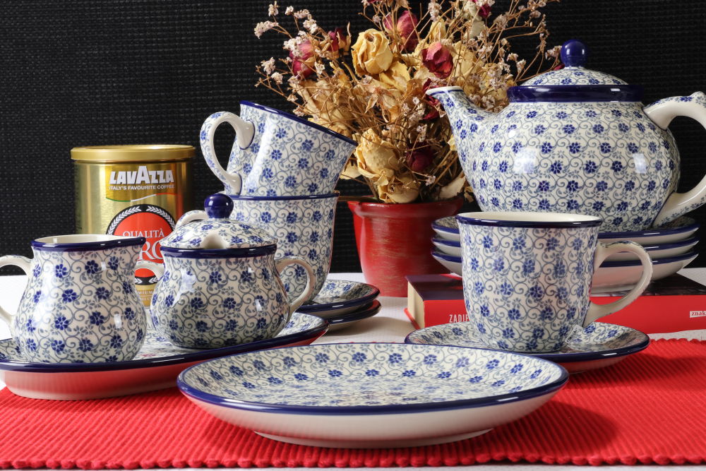 Zestaw do kawy dla 6 osób dekoracja 2068X Ceramika Bolesławiec złożony z 22 elementów.