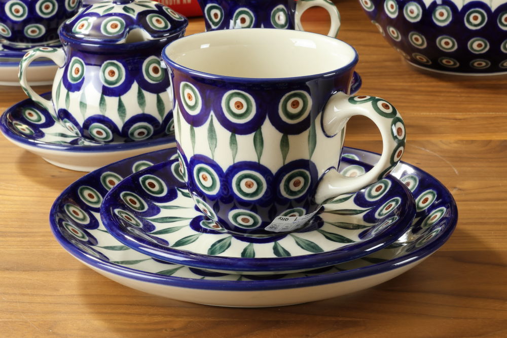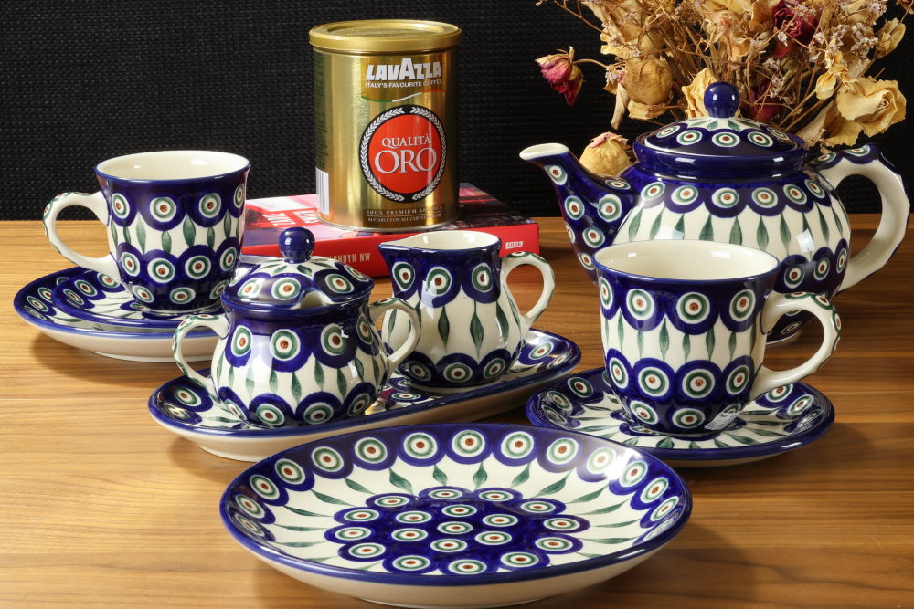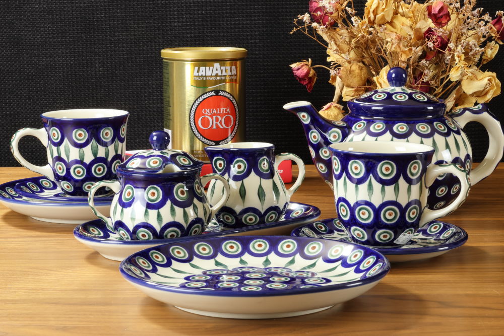Zestaw do kawy dla 6 osób dekoracja 54X Ceramika Bolesławiec złożony z 22 elementów.